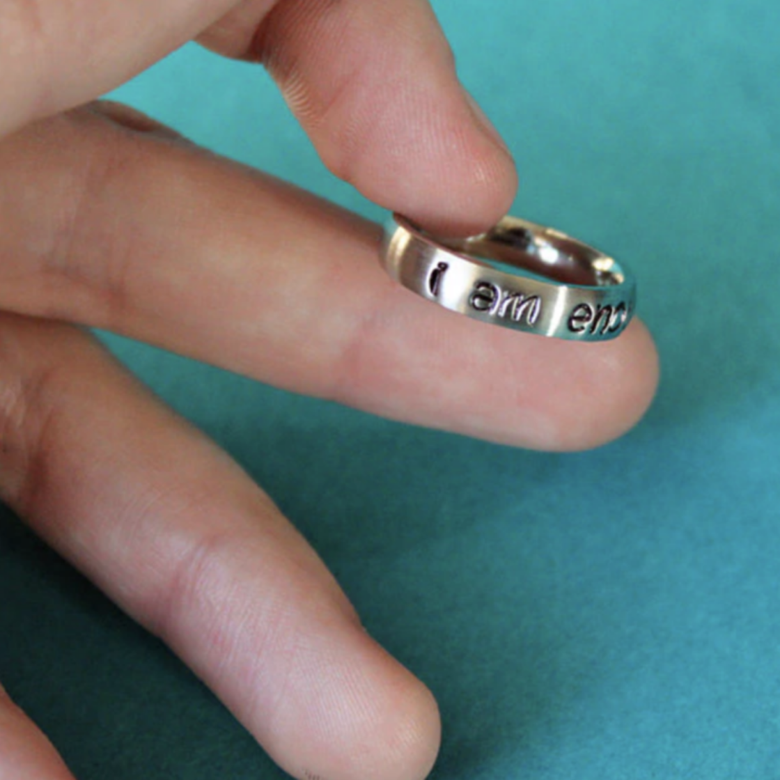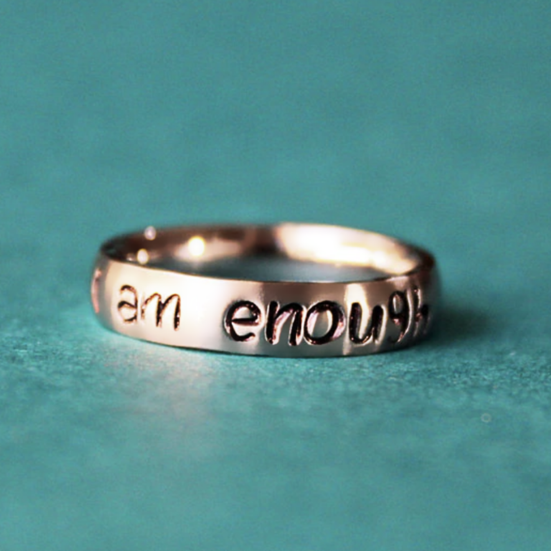 Find your inner calm on a daily basis with the “I Am Enough” Breathe Ring. Mindfulness is about more than simply meditation. Mindfulness is about being present and remembering when to pause and reflect on life, positivity, and being grateful.